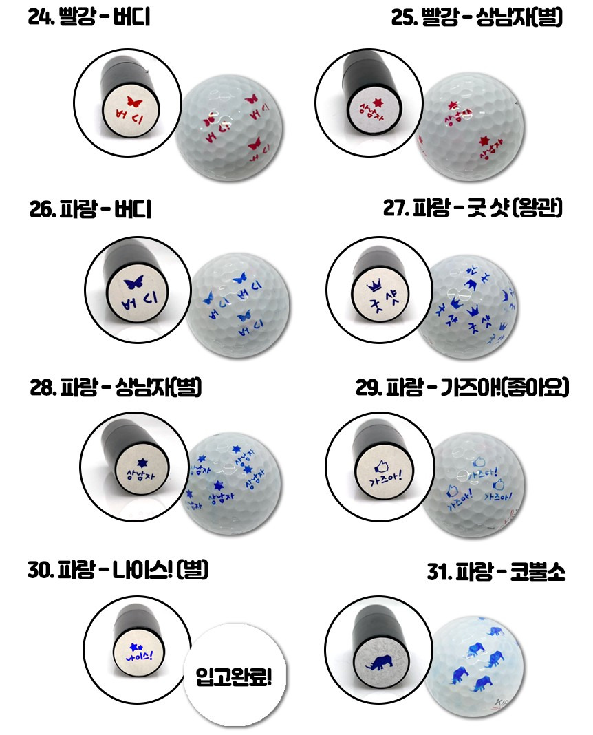 고저스 골프 스탬프 골프공은 다양한 디자인의 스탬프를 사용해 골프공에 개성을 더할 수 있어요. 이런 골프공을 사용하면 나의 느낌을 그대로 표현할 수 있답니다. 사용 방법도 너무 간단해요. 원하는 스탬프를 골라서 골프공에 꾹 눌러주기만 하면 끝! 이 정도는 누구나 쉽게 할 수 있으니 걱정 마세요!